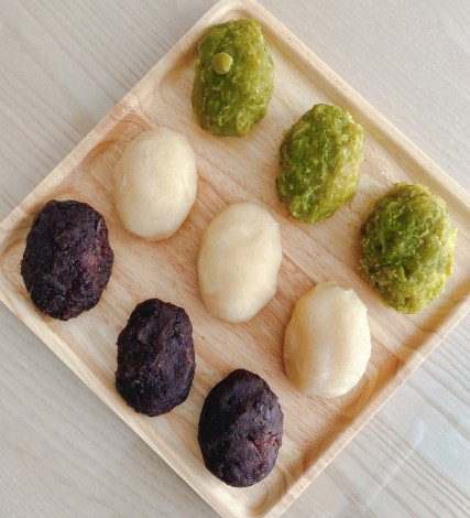 • ずんだあん枝豆をすりつぶして作る、青い爽やかな香りのあん。