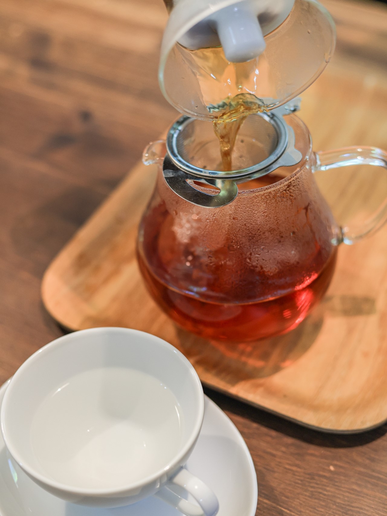 すぐに紅茶を飲み切らない時は、茶こしで濾し、茶葉を取り除いて別容器に移しておくことで、いれたてのおいしさがある程度保たれます。